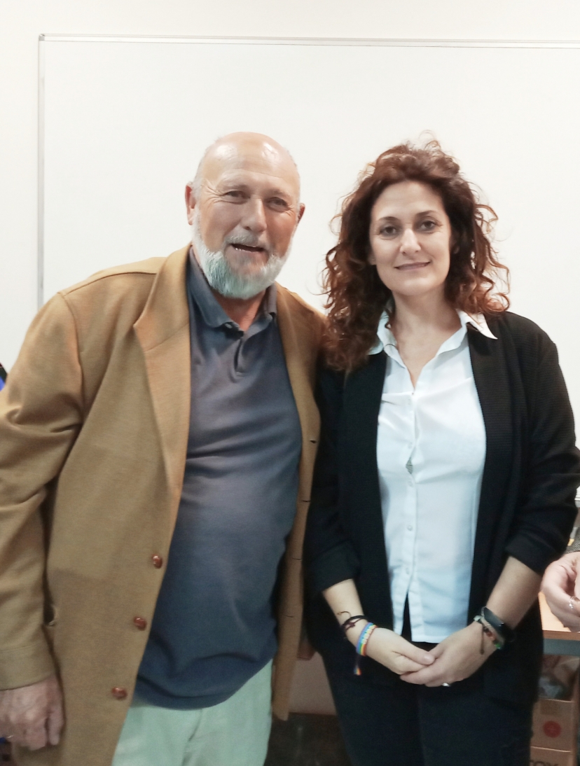 En la foto, José Luis Fernández de Castro, representante de “La Ventana de Atenea” (colectivo organizador del acto) junto a Carmen Mudarra, asistente al acto y candidata de Izquierda Unida en las próximas elecciones municipales.