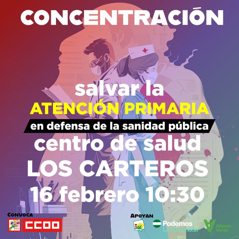 Nos quiere cobrar hasta 150 euros por las consultas. Quieren hacer caja con nuestra salud, con nuestras vidas. Con nuestra necesidad.Izquierda Unida, Podemos y Alianza Verde secundan la concentración convocada por CCOO Sanidad en el centro de salud de Los Carteros (San José) el próximo 16 de febrero, a las 10:30.Defiende tus derechos, concéntrate.