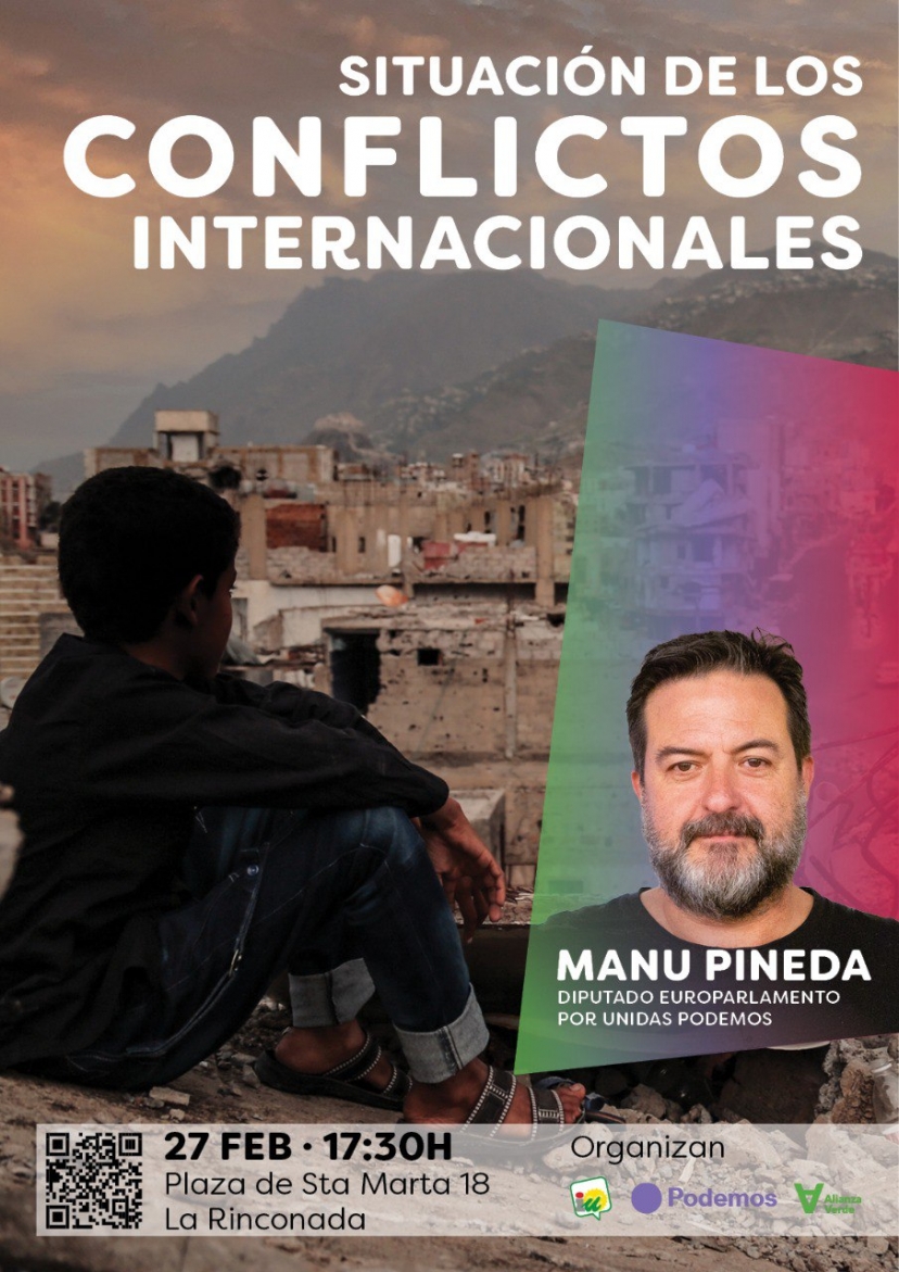 El próximo Lunes, 27 de febrero, a las 17,30 horas te invitamos a la charla a cargo del eurodiputado de Izquierda Unida, Manu Pineda.