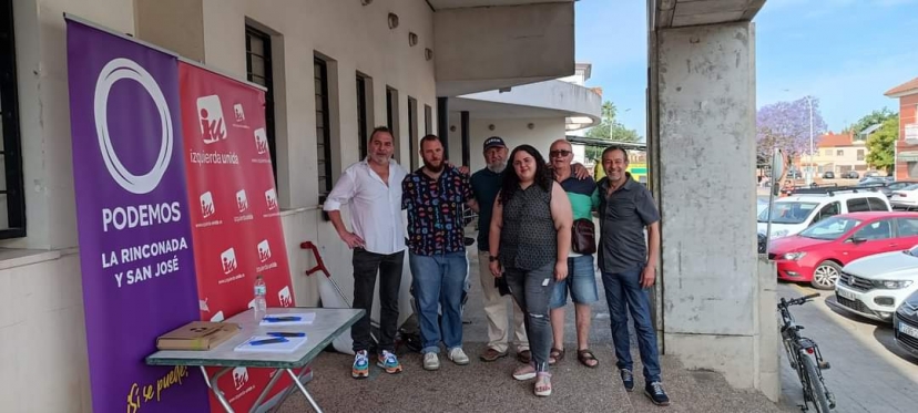 Recogiendo propuestas y escuchando las necesidades de la gente, en el Centro de Salud Los Carteros. Dos organizaciones, un alma, un pueblo que mejorar. Nuestro candidato Nacho Ruiz y Sheila Guerrero Garzón de Podemos La Rinconada, junto a compañeros de militancia.