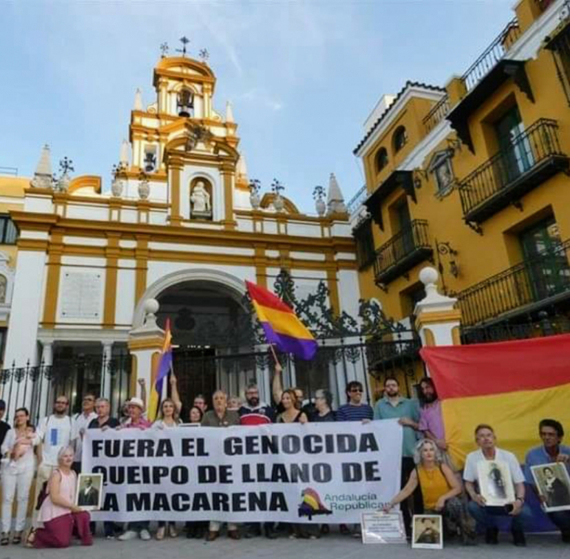 Se ha convocado una concentración este viernes ante la basílica de la Macarena para exigir el traslado de los restos del general golpista Gonzalo Queipo de Llano y del auditor de guerra Francisco Bohórquez y el cumplimiento de la Ley de Memoria Histórica. El acto arrancará a las 20,00 horas para conmemorar el Día de la Memoria Histórica.