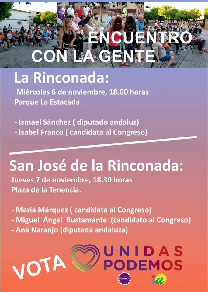 ENCUENTRO CON LA GENTE el miércoles 6 de noviembre a las 18:00h en el parque La Estacada, La Rinconada, Sevilla